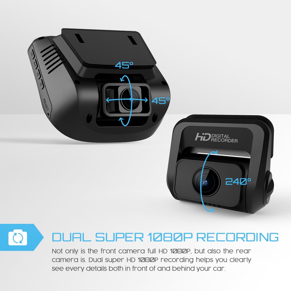 - 【Dual 170°Wide Angle Car Cam】Both the front and rear lens are 170°wide angle. So this dash cam provides a much wider vision. 6 lanes can be covered and blind spot can be reduced to great extent. This will be the only car cam adopting both 170°wide angle at this price level.